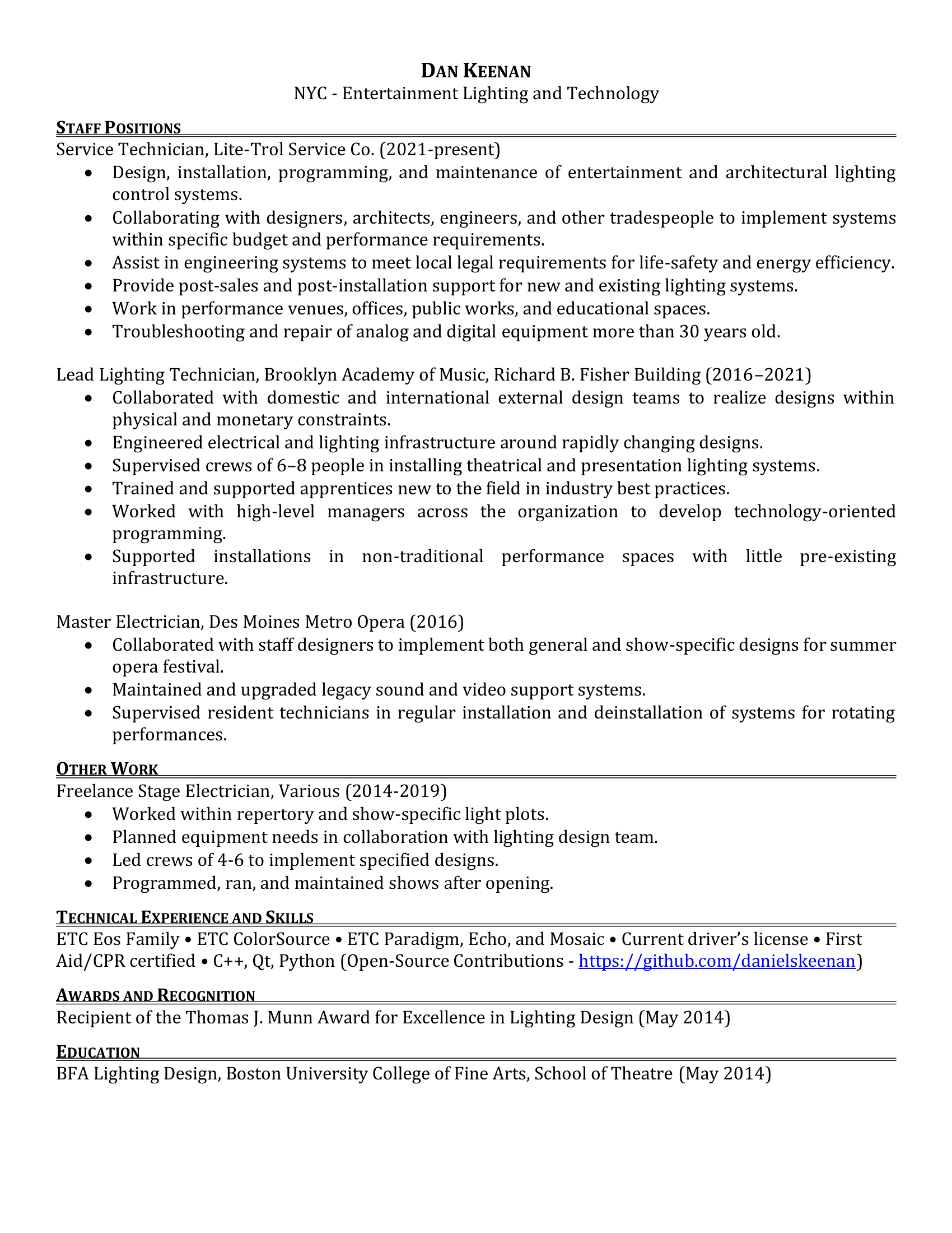 Hi! I'm Dan Keenan, a stage electrician and occasional software developer based in New York City.